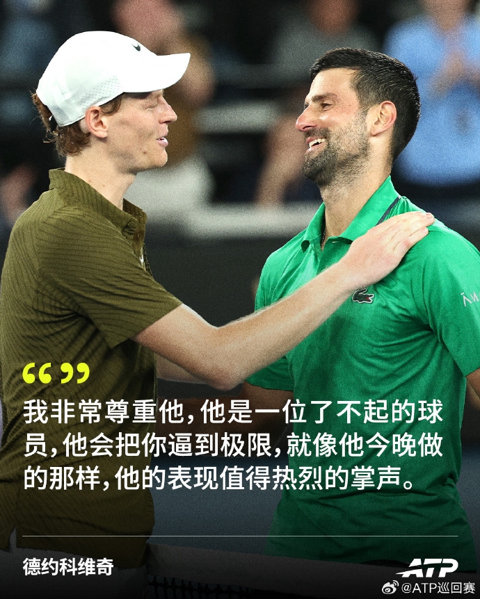 01月30日消息 澳网男单半决赛,38岁的德约科维奇鏖战4小时9分钟,以3-2击败辛纳晋级决赛,将战阿尔卡拉斯。