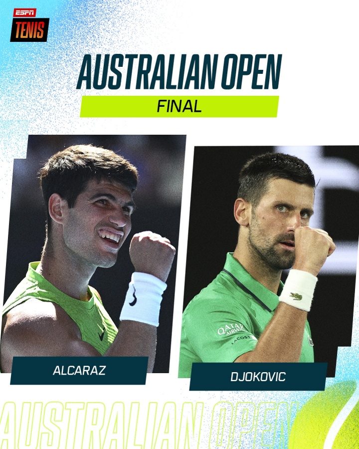 北京时间2月1日16:30,澳网决赛德约将对阵阿尔卡拉斯。