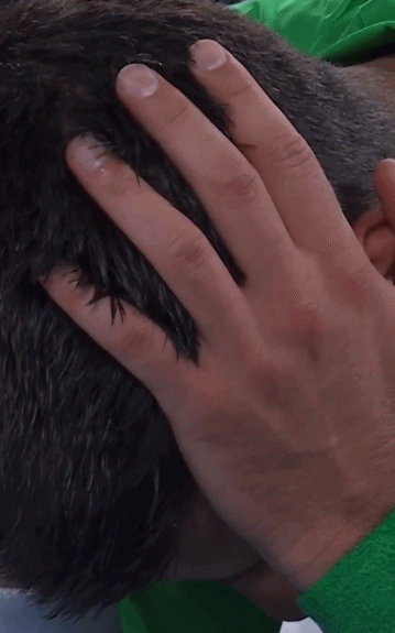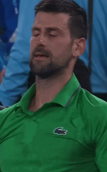 比赛结束后,镜头给到德约科维奇,德约长时间捂头。