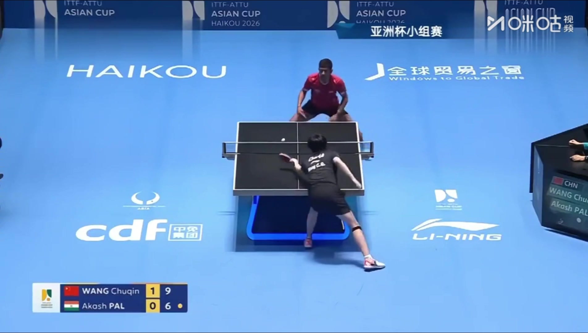 开门红!海口乒乓球亚洲杯小组赛第一轮:王楚钦3-0阿卡什·帕尔