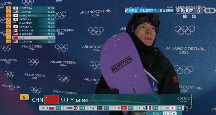02月06日消息 冬奥会单板滑雪男子大跳台资格赛第一轮结束,三名中国选手中苏翊鸣、杨文龙在第一轮都出现摔倒的情况。