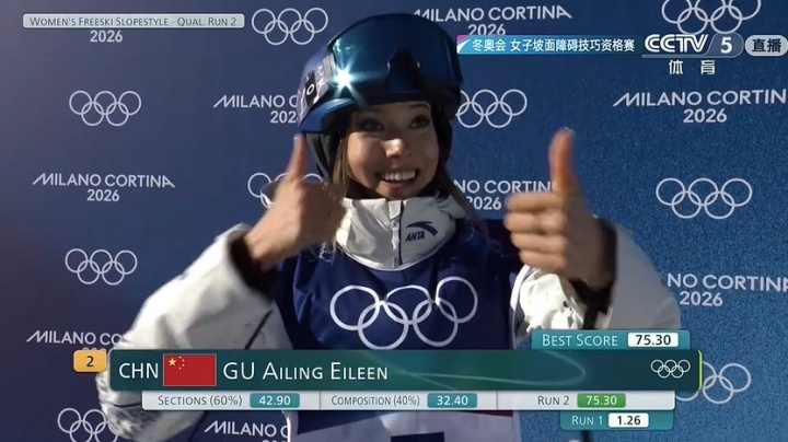 02月07日消息 米兰冬奥会自由式滑雪女子坡面障碍技巧预赛,谷爱凌第二滑流畅完成,获得75.30分。暂升自由式滑雪女子坡面障碍技巧预赛第二。目前已经确定晋级决赛。