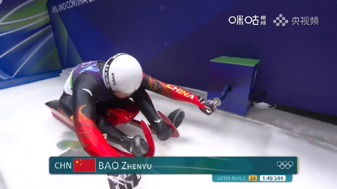 奥地利选手约纳斯・穆勒获得亚军,中国选手鲍振宇最终位列第24名,追平中国男子雪橇项目的冬奥会最好成绩。