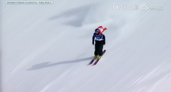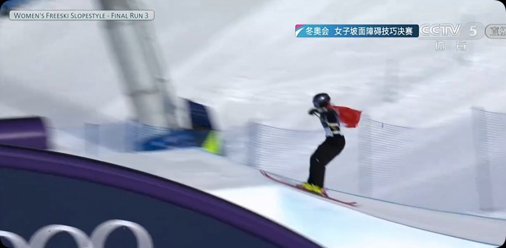 谷爱凌最后一滑失误,瑞士选手确定夺冠后身披国旗完成最后一滑