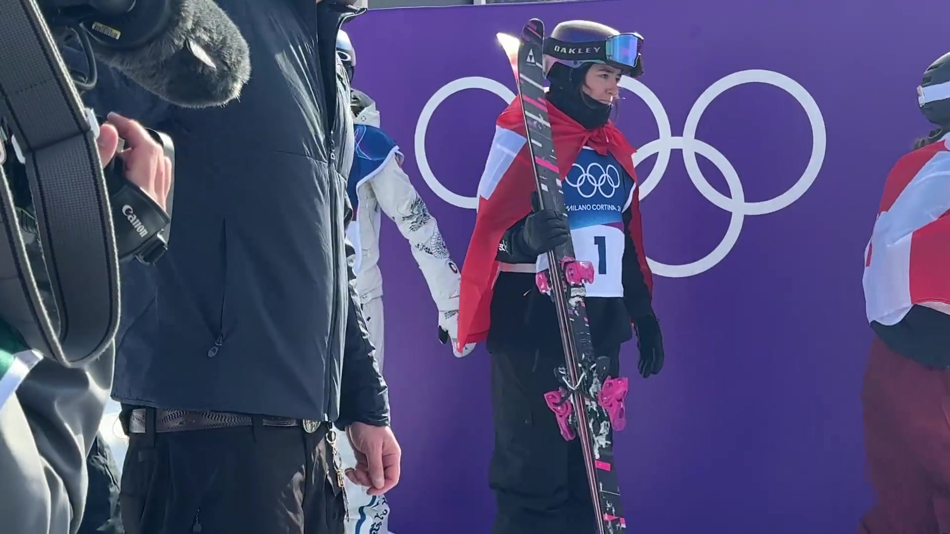 谷爱凌最后一滑失误,瑞士选手确定夺冠后身披国旗完成最后一滑