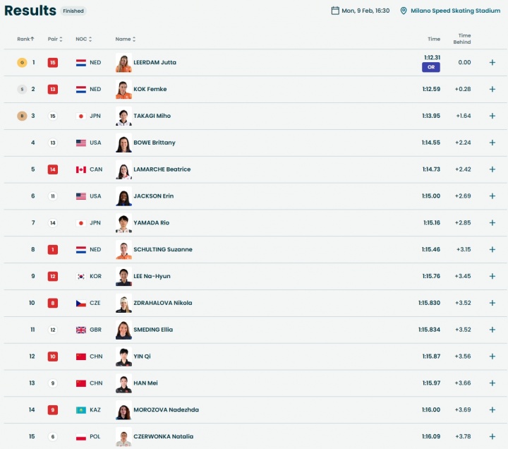 02月10日消息 米兰冬奥会速度滑冰女子1000米决赛结束,中国选手殷琦、韩梅、田芮宁均顺利完赛。