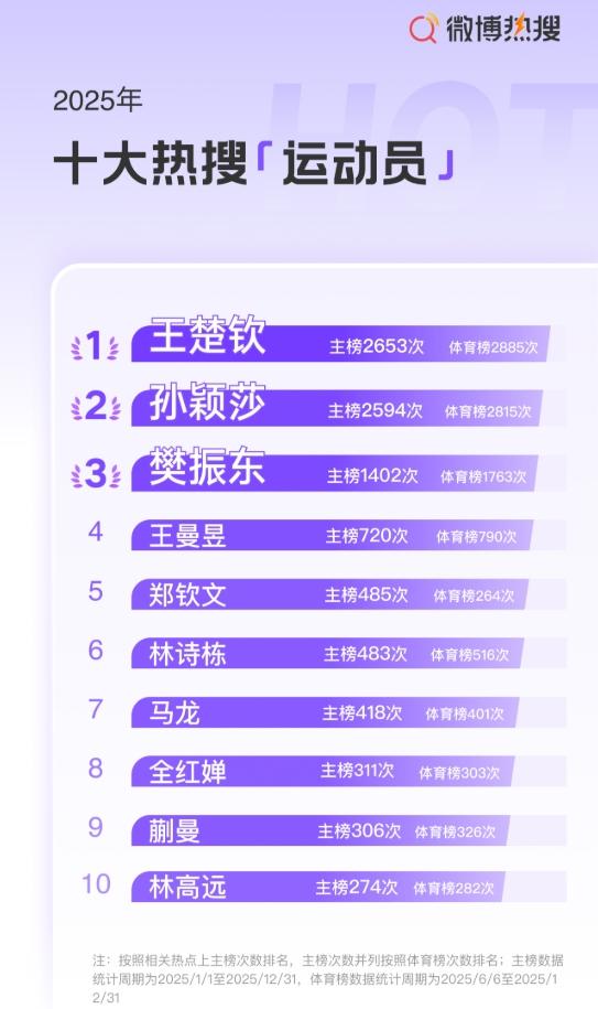 2025微博十大热搜运动员: