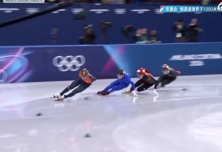 对手被判犯规,林孝埈小组第三晋级短道速滑男子1000米1/4决赛