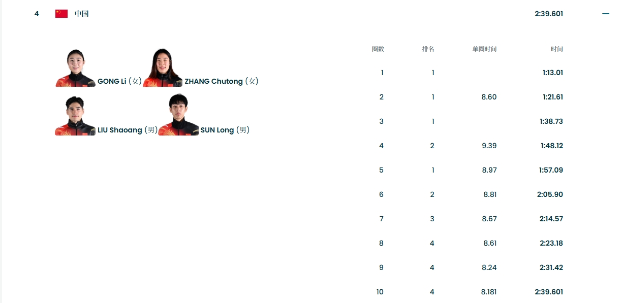 02月10日消息 米兰冬奥会短道速滑男女混合团体接力决赛A,卫冕冠军中国队排名第四,无缘奖牌。