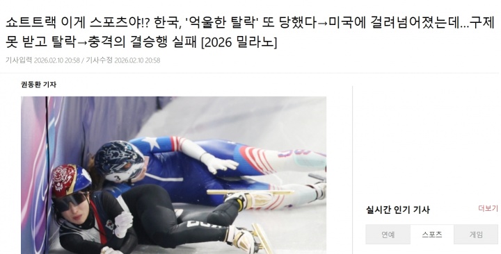 韩媒标题:短道速滑,这还是体育吗!? 韩国又遭“冤枉淘汰”→被美国选手绊倒却…未获复判直接出局→震惊无缘决赛