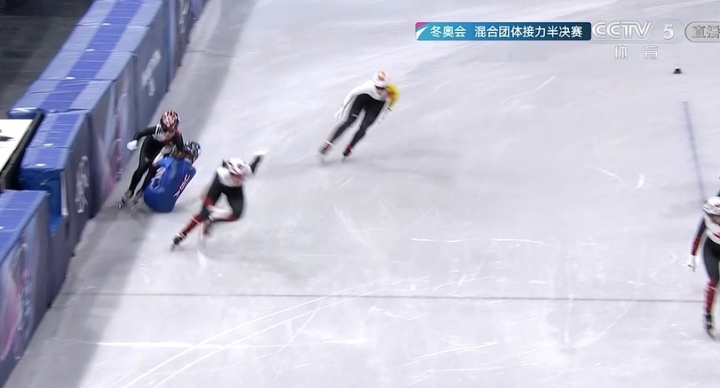 短道速滑混合团体接力半决赛:美国队带倒韩国队,韩国申诉未果