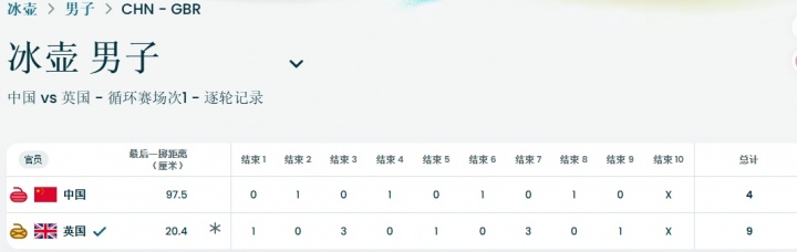 冰壶男子循环赛:中国队4-9不敌英国队,无缘开门红
