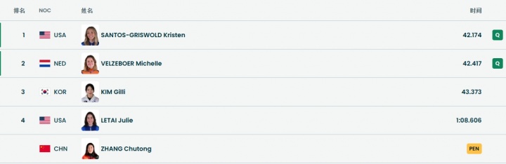 张楚桐也被判犯规无缘晋级,范可新以42.737秒晋级半决赛。