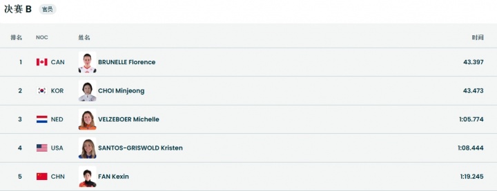 短道速滑女子500米决赛:荷兰选手夺金,范可新排名第十