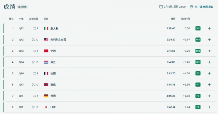 2月15日消息 米兰冬奥会速度滑冰男子团体追逐1/4决赛,中国队刘瀚彬、李文淏、吴宇联手出战,同组战胜卫冕冠军挪威队,最终滑出3分41秒67的成绩,排名第3,成功晋级半决赛。