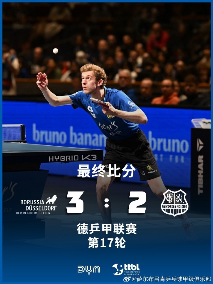 德乒甲联赛:樊振东首盘取胜,萨尔布吕肯2-3遭杜塞尔多夫逆转