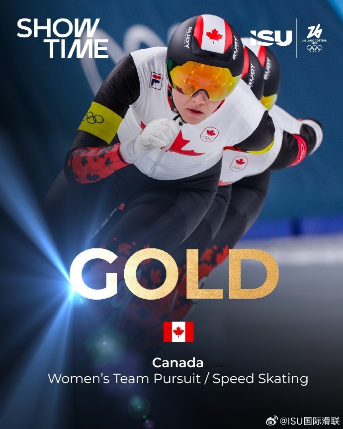 从北京冬奥会到米兰冬奥会,加拿大队再次拿到速度滑冰女子团体追逐金牌,成功卫冕捍卫荣誉。