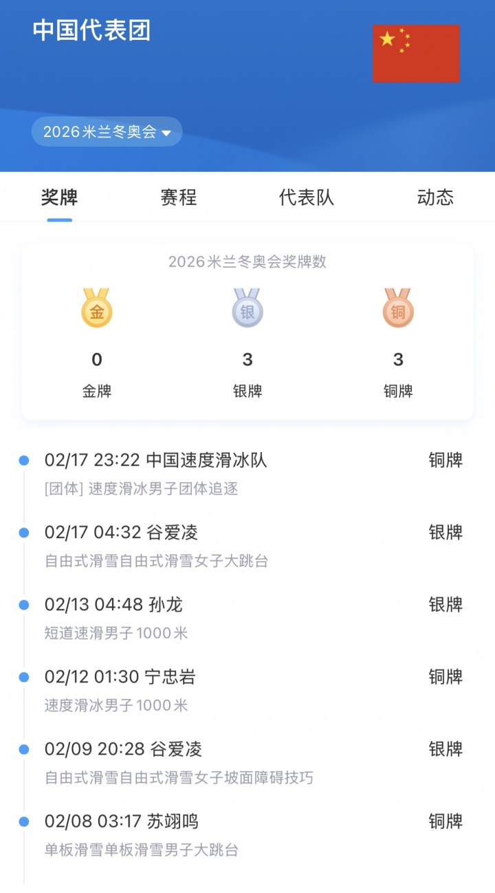米兰冬奥会最新奖牌榜: