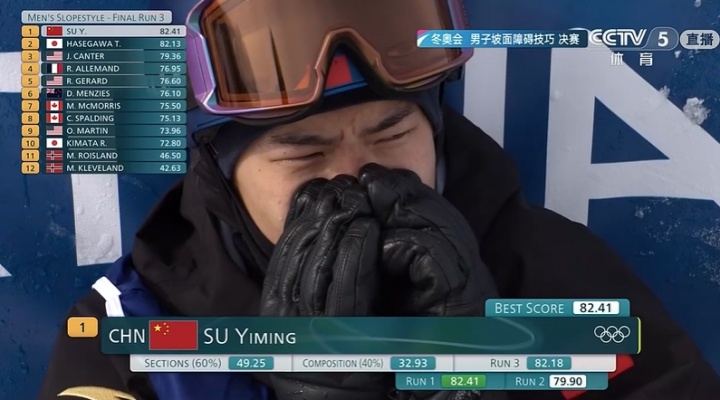 喜极而泣!苏翊鸣第三滑完美发挥拿到82.18分 完成动作忍不住痛哭