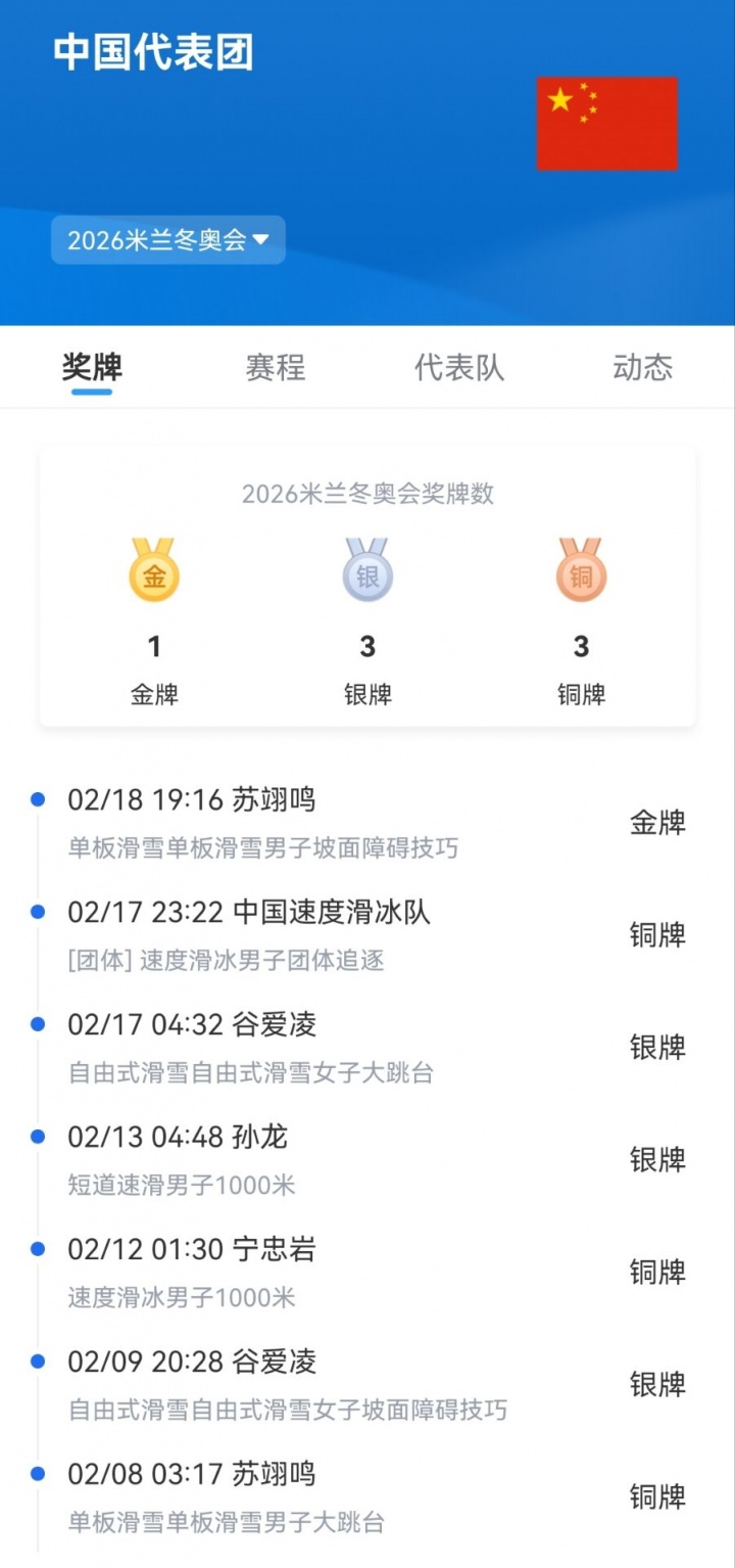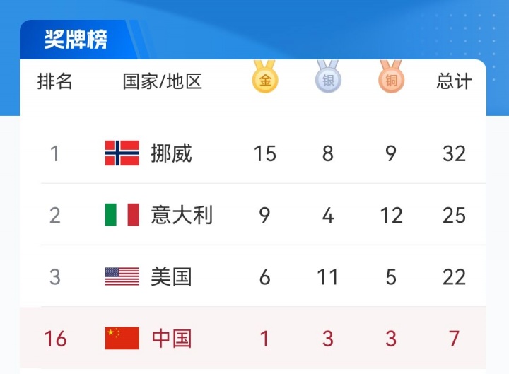 拿下首金!冬奥奖牌榜:中国1金3银3铜第16!徐梦桃等正出战决赛