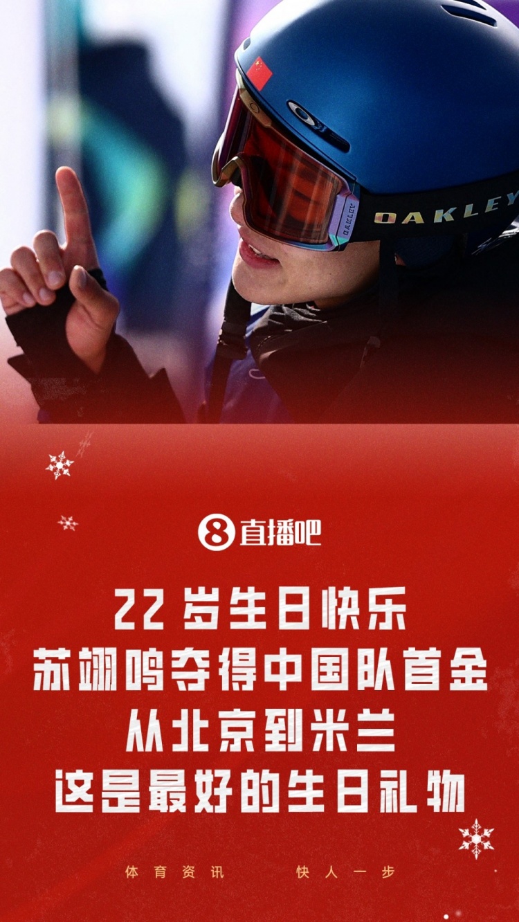 刚刚,苏翊鸣在22岁生日当天斩获单板滑雪男子坡面障碍技巧冠军,为中国体育代表团拼下米兰冬奥会首金!这是他第二枚冬奥金牌,第四枚冬奥奖牌。