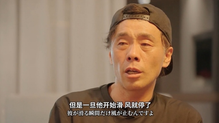 佐藤康弘:他训练的时候,本来是逆风的,但是一旦他开始滑,风就停了。拍视频或者照片的时候,只有他那里是有光的。