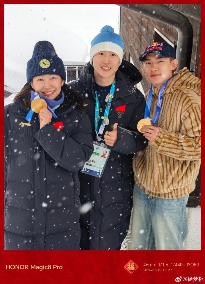 徐梦桃社媒写道:“其实我和小鸣(苏翊鸣)早已料到,昨天拍的,你就说厉不厉害?”