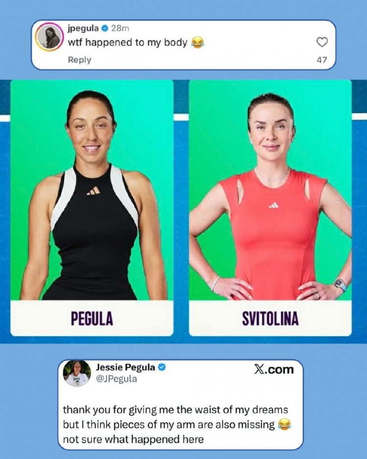 不过据博主“克母鸡”消息,本场比赛赛前出现了一则趣事,WTA在发布决赛海报时不小心把佩古拉衣服的白边P掉,导致佩古拉的身材看上去十分面条,看上去有些诡异…