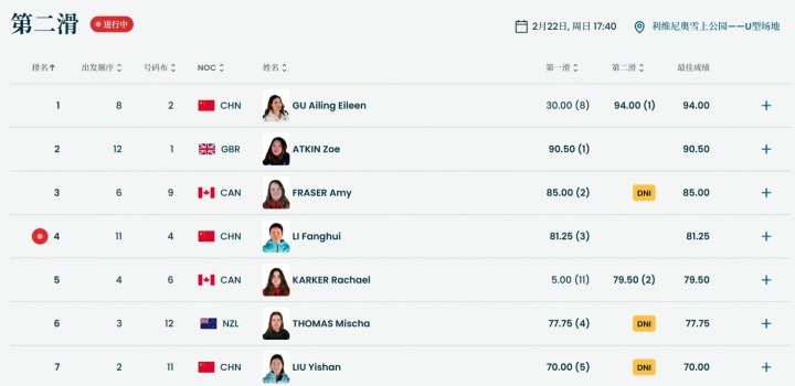 包揽金银!谷爱凌94.75分夺金 李方慧93分摘银英国选手92.5分摘铜