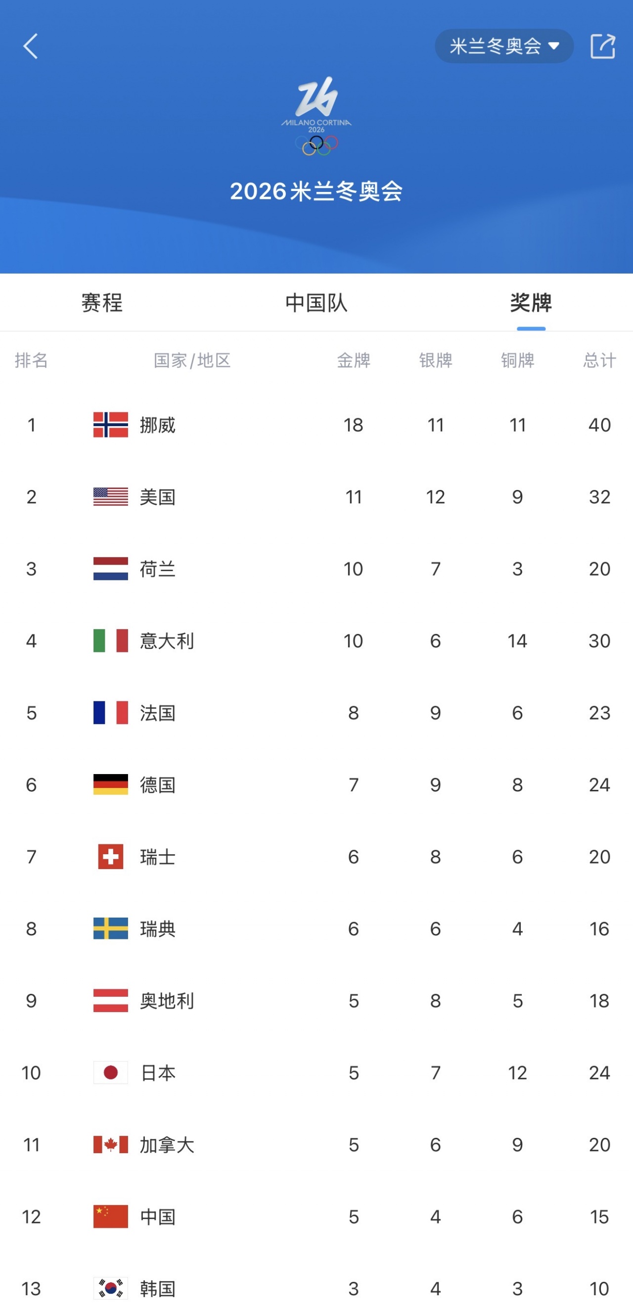 02月22日消息 随着中国代表团本届冬奥会最后一个参赛项目男子四人雪车的结束,中国队结束了米兰冬奥会所有的比赛,最终获得5金4银6铜的成绩,刷新冬奥会境外参赛最好成绩,追平上届北京冬奥会15枚奖牌纪录!