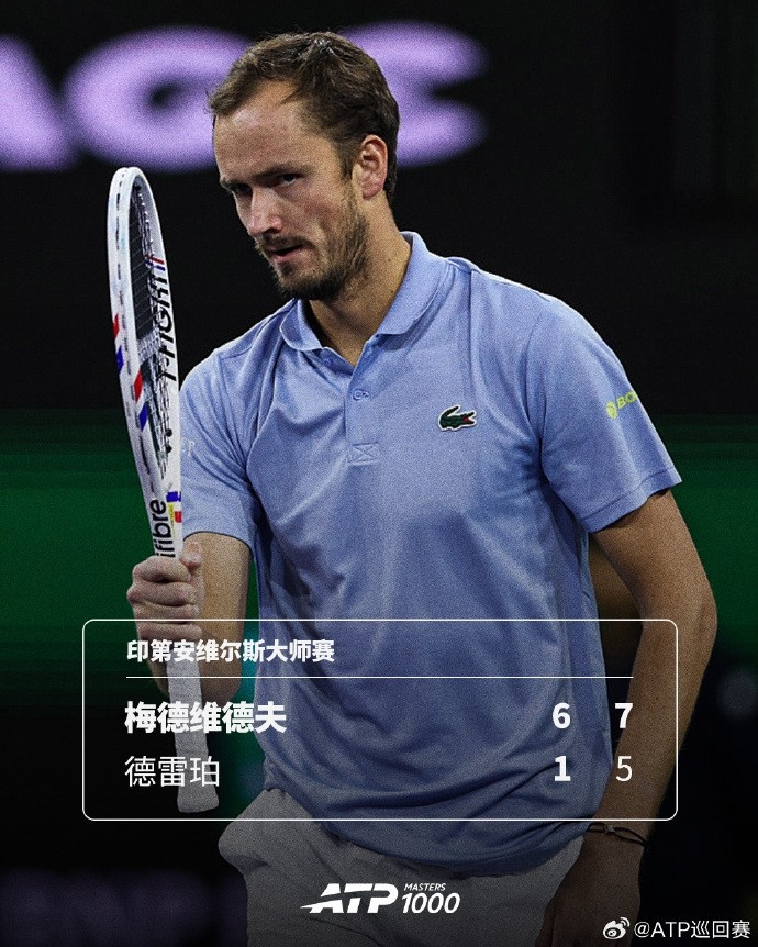 梅德韦杰夫2-0击败德雷珀,连续四年晋级印第安维尔斯大师赛四强