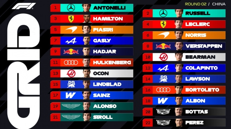 附F1中国站正赛发车顺序: