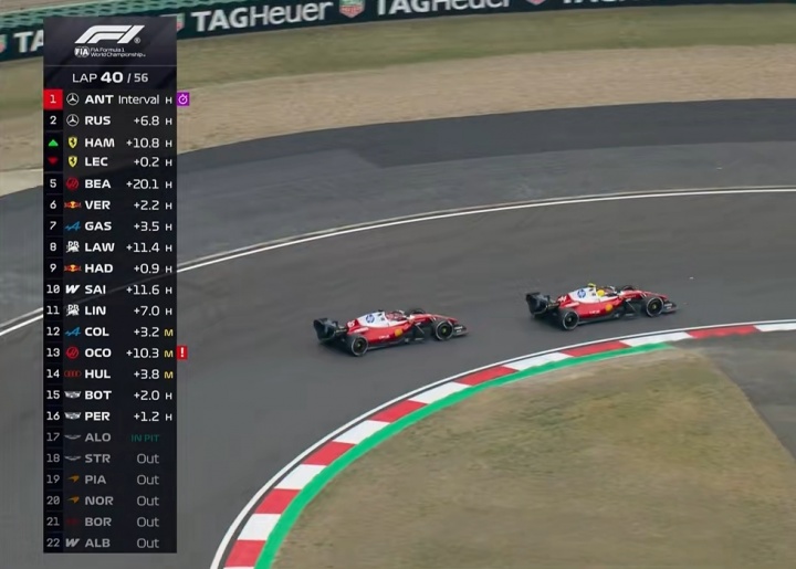 疯狂!第40圈勒克莱尔与汉密尔顿互超,第三之争白热化!