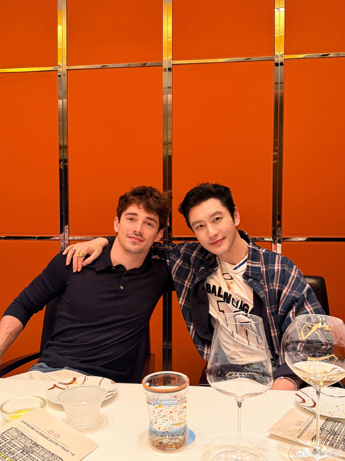03月16日消息 演员黄晓明晒出与F1法拉利车手勒克莱尔合照。