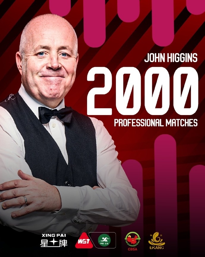 据统计,这是希金斯职业生涯第2000场比赛,希金斯也成为史上第一位完成这项成就的斯诺克选手。他赢下了2000场比赛中的1387场,胜率为69.4%。