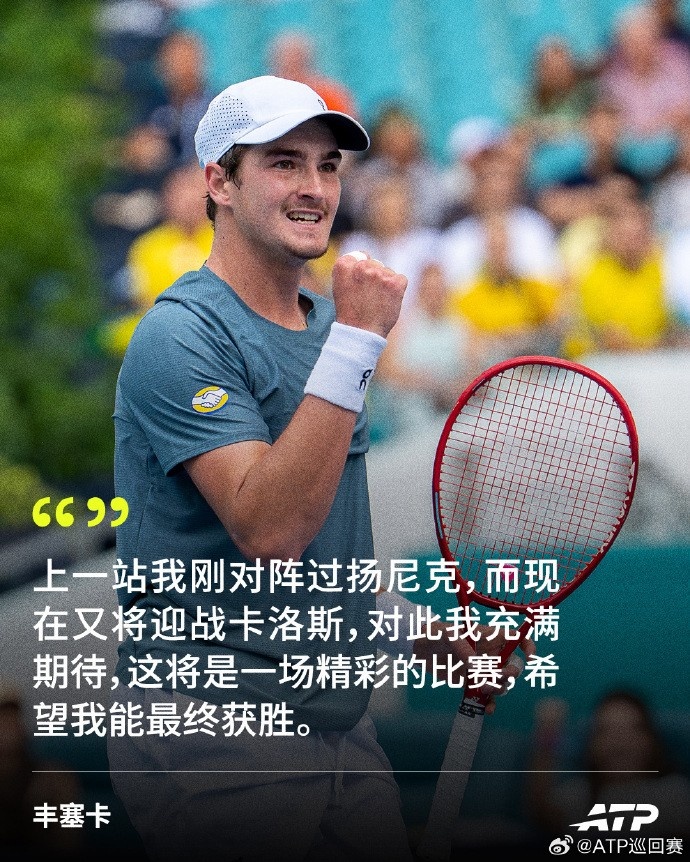 丰塞卡即将在迈阿密大师赛第二轮迎来和阿尔卡拉斯的首次交手,上一站印第安维尔斯大师赛第四轮,他刚刚结束了和辛纳的首次交手,当时以双抢七落败。