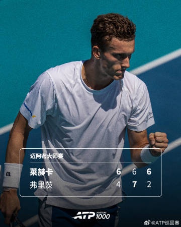 莱赫卡2-1击败弗里茨,晋级迈阿密大师赛8强