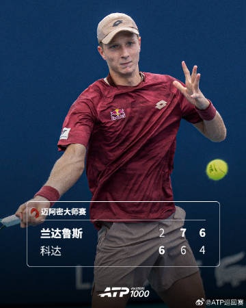 3月25日消息 ATP1000迈阿密大师赛第四轮,资格赛选手兰达鲁斯2-1逆转科达。