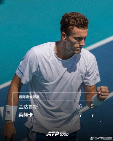3月26日消息 ATP1000迈阿密大师赛四分之一决赛,莱赫卡2-0击败兰达鲁斯。