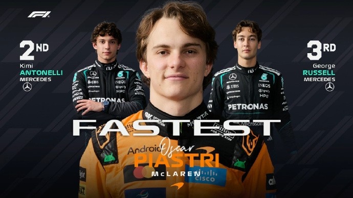 3月27日消息 F1日本大奖赛结束二练争夺,迈凯伦车手皮亚斯特里抢下头名,梅赛德斯两位车手分列二三位。