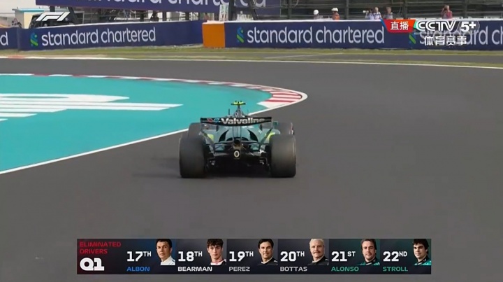 Q1停表,科拉平托在最后时刻上到第16,梅奔和法拉利位列前4,两台阿斯顿马丁垫底,斯特罗尔、阿隆索、博塔斯、佩雷兹、贝尔曼和阿尔本被淘汰。