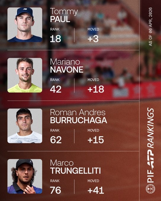 目前,小布鲁查加的网球排名已经来到世界第62名。