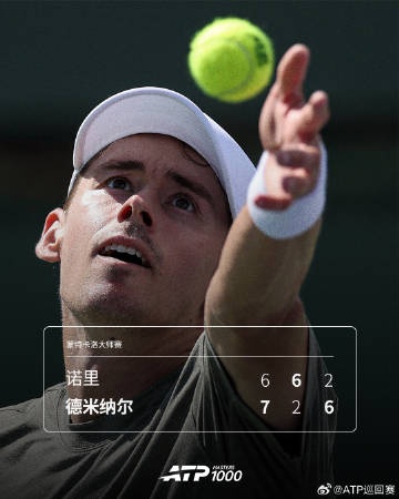 4月8日消息 ATP1000蒙特卡洛大师赛第二轮,德米纳尔2-1击败诺里。