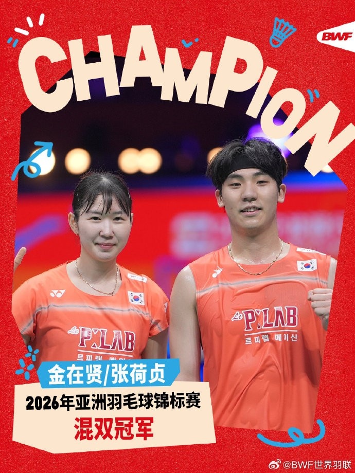 4月12日消息 2026年羽毛球亚锦赛混双决赛,德差波/苏皮萨拉对阵金在贤/张荷贞。德差波/苏皮萨拉赛前退赛,金在贤/张荷贞收获混双冠军。
