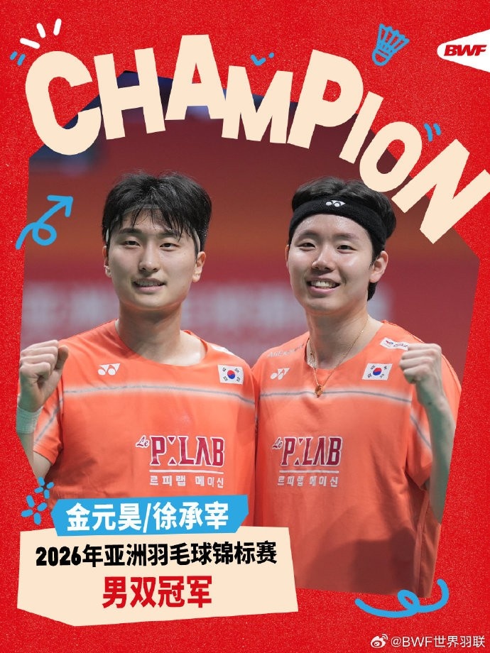 韩国队时隔10年夺冠!徐承宰/金元浩夺得羽毛球亚锦赛男双冠军