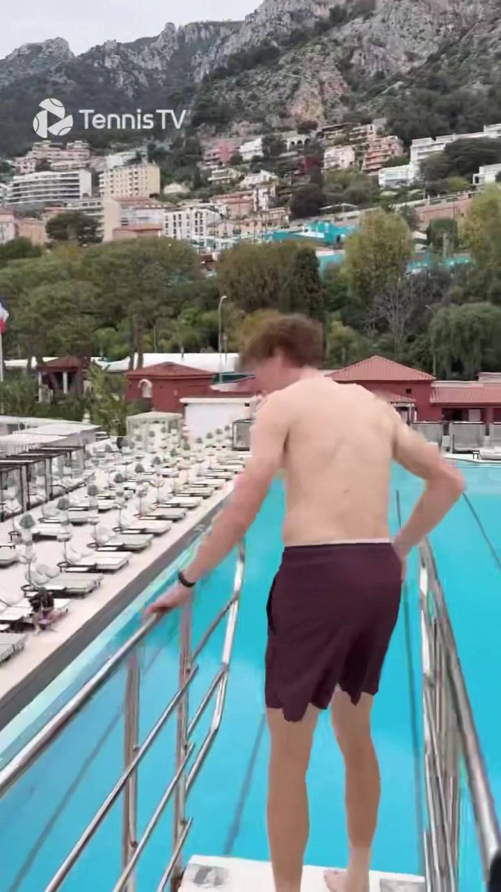 关系很好!辛纳跳水庆祝蒙特卡洛大师赛夺冠,阿尔卡拉斯现场见证