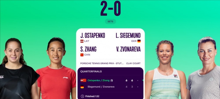 张帅/奥斯塔彭科组合2-0取胜,晋级WTA500斯图加特半决赛