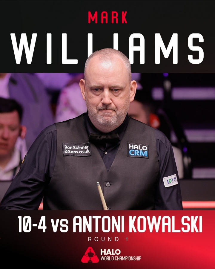 第一阶段战罢马克·威廉姆斯6-3领先,第二阶段上半场过后马克·威廉姆斯率先到达赛点9-4领先,最终10-4战胜对手晋级16强。