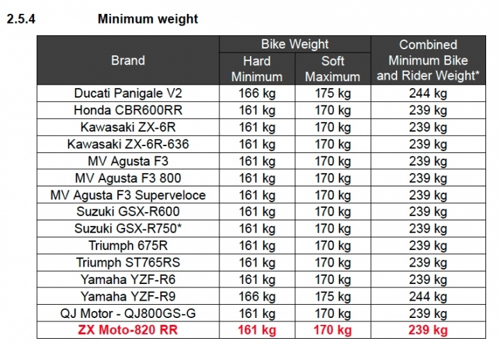 例如在“最小重量”这一标准中,明确限制了各参赛车型的最低车手加车辆的最低重量,其中就包含了张雪机车820RR,也就是说,在2026赛季开始之前,张雪机车团队就已经根据赛事规定做了性能平衡,以达到参赛标准。