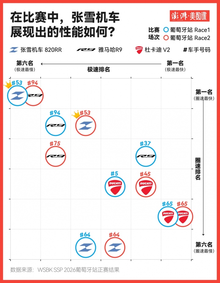 从张雪机车夺冠的两轮数据分析来看,目前张雪机车并未展现出过于激进的性能。